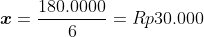 x = 4/4 (4 kali x, pindah ruas menjadi bagi 4)